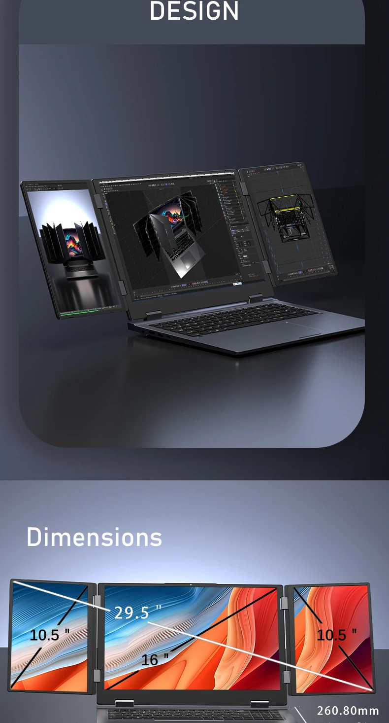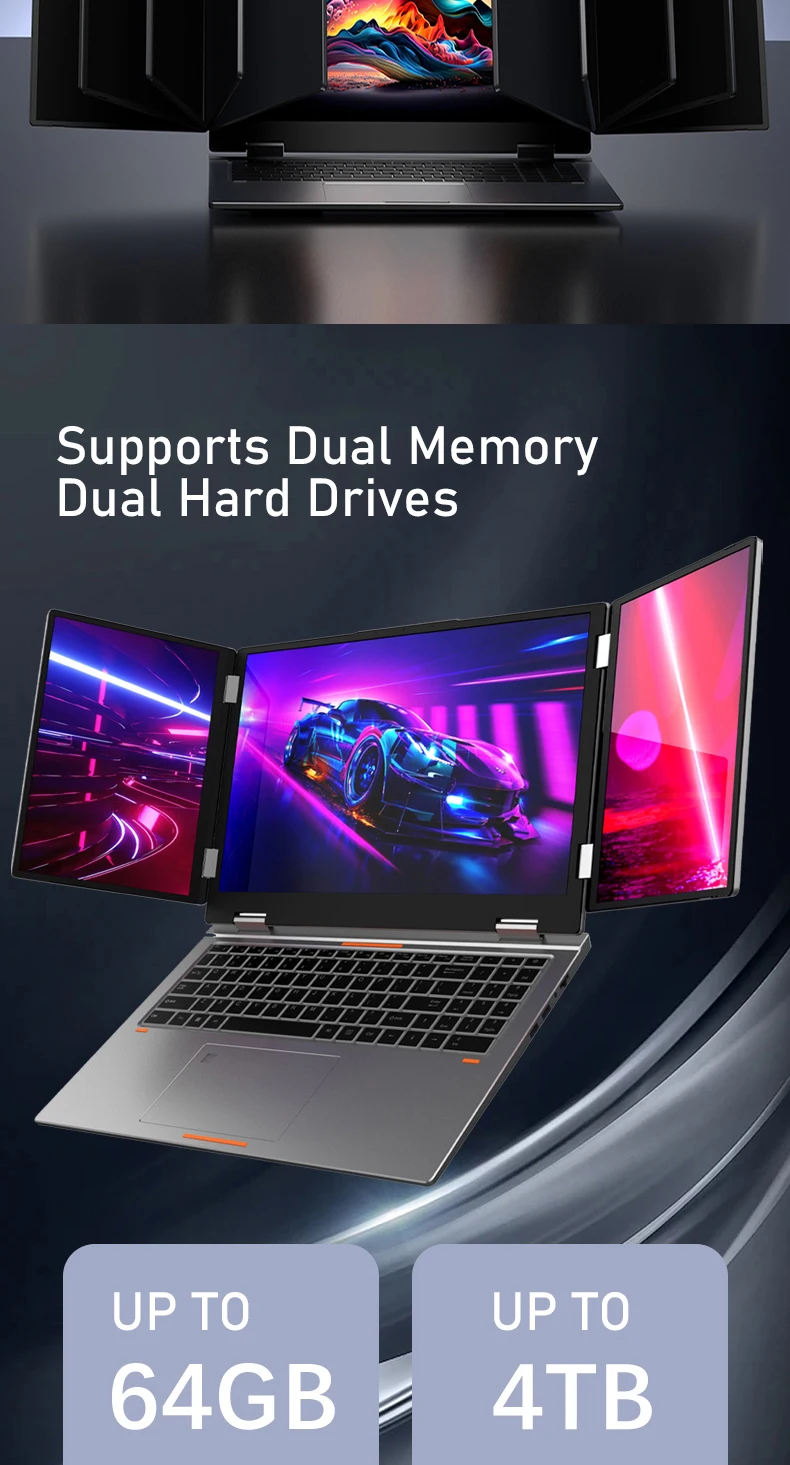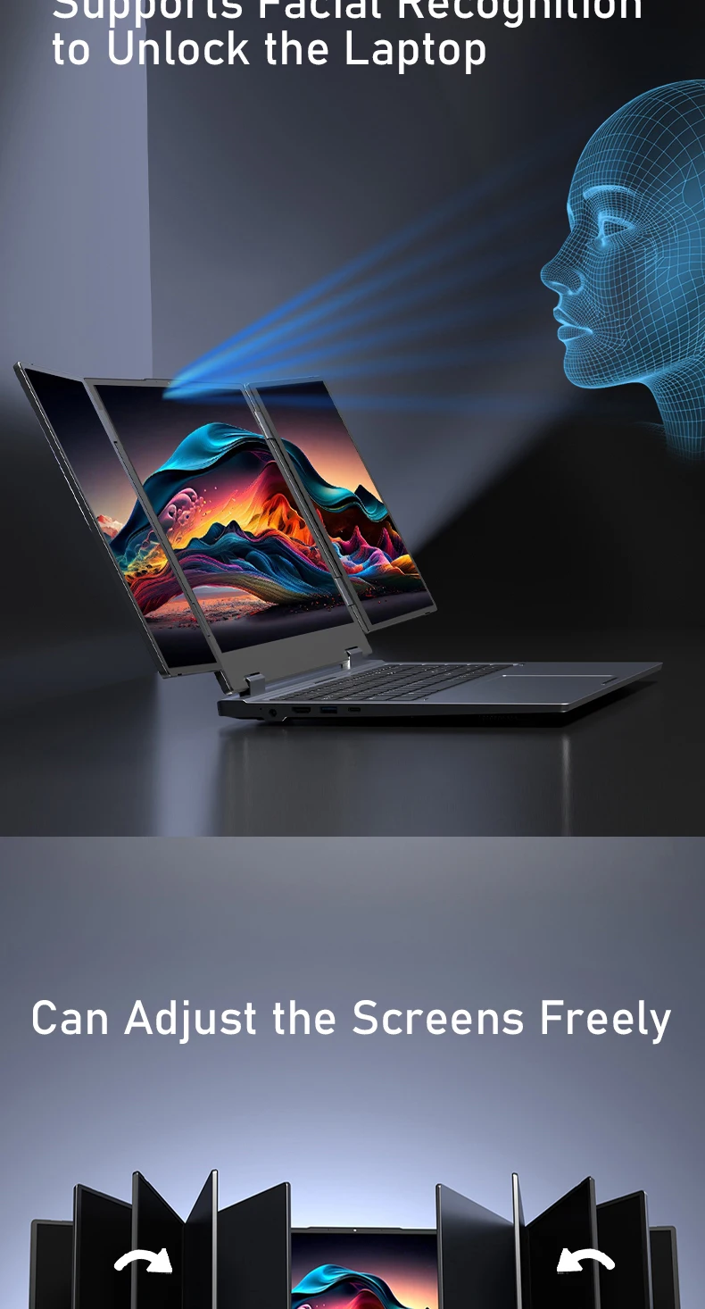 16 Inch Triple-Screen Laptop I7-1260P 12th Gen Wifi 6 Max 64GB RAM 4TB SSD Portable Monitor 3 Screen Laptop Student PC
