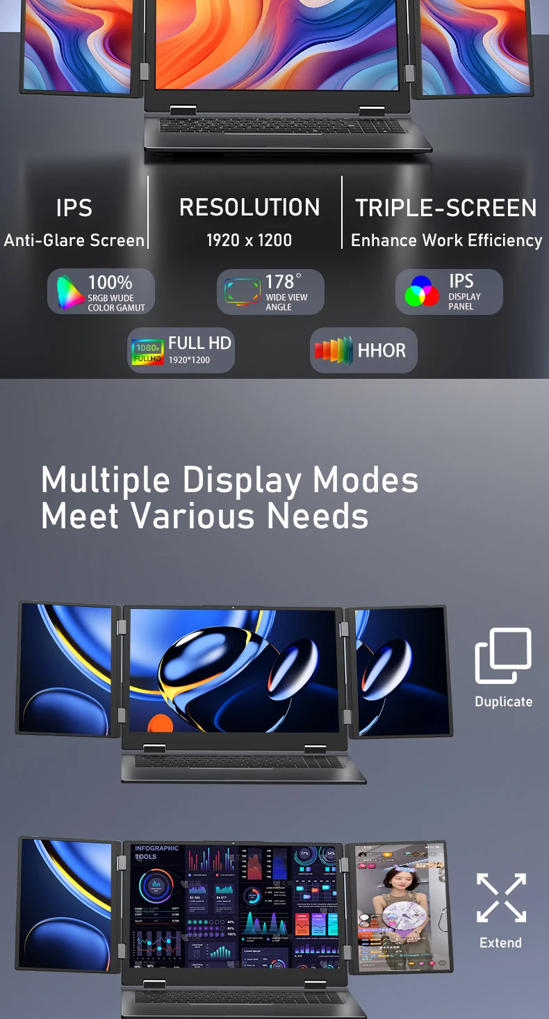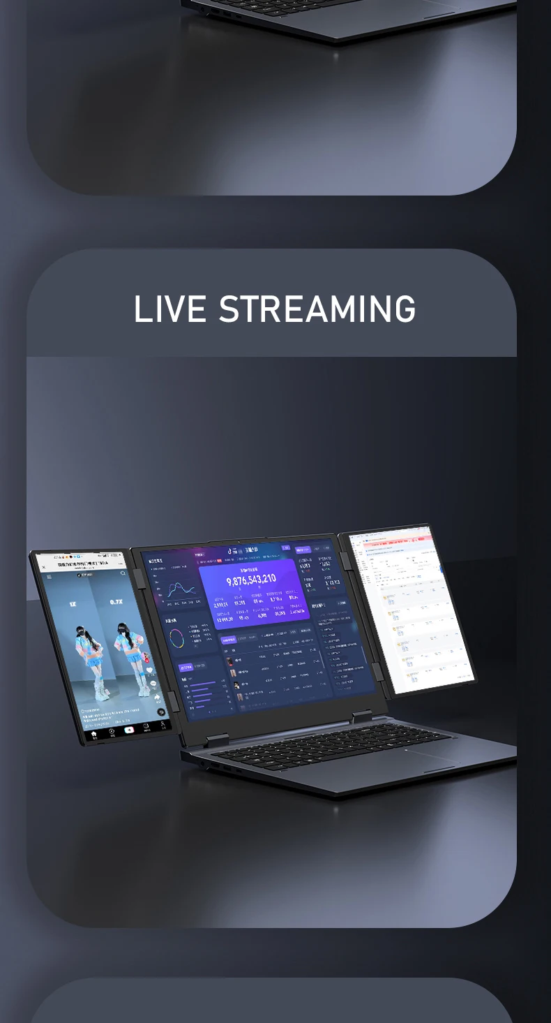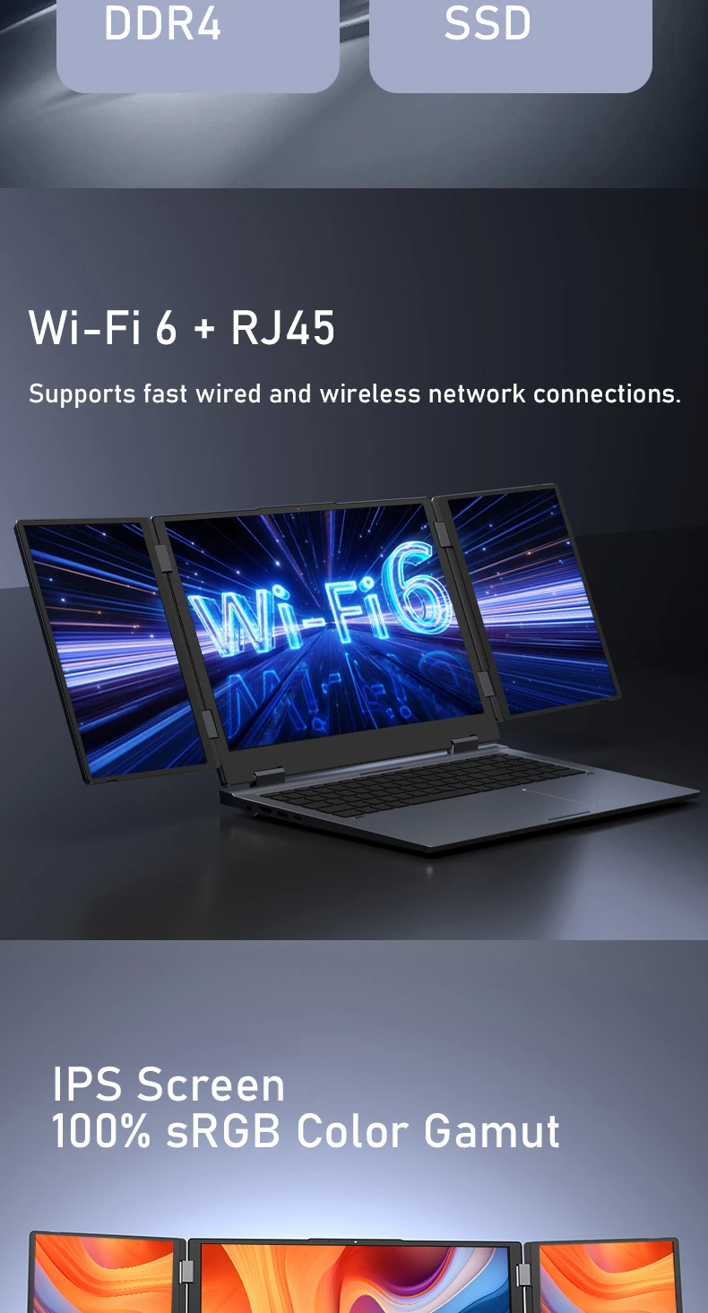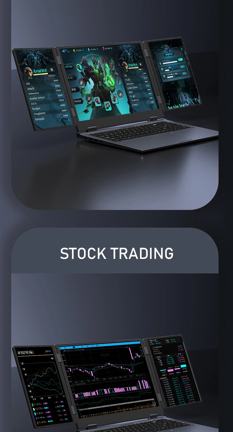 16 Inch Triple-Screen Laptop I7-1260P 12th Gen Wifi 6 Max 64GB RAM 4TB SSD Portable Monitor 3 Screen Laptop Student PC